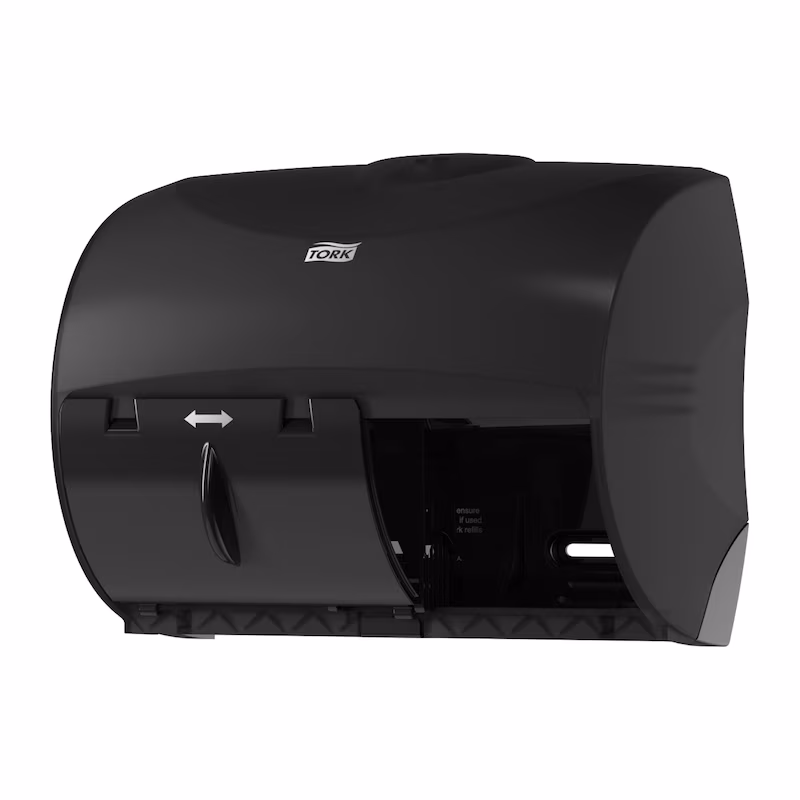 Tork OptiCore twin roll bath tissue dispenser works as a low-maintenance, high-capacity dispenser for bathrooms with limited space. Can hold two 865-sheet rolls.